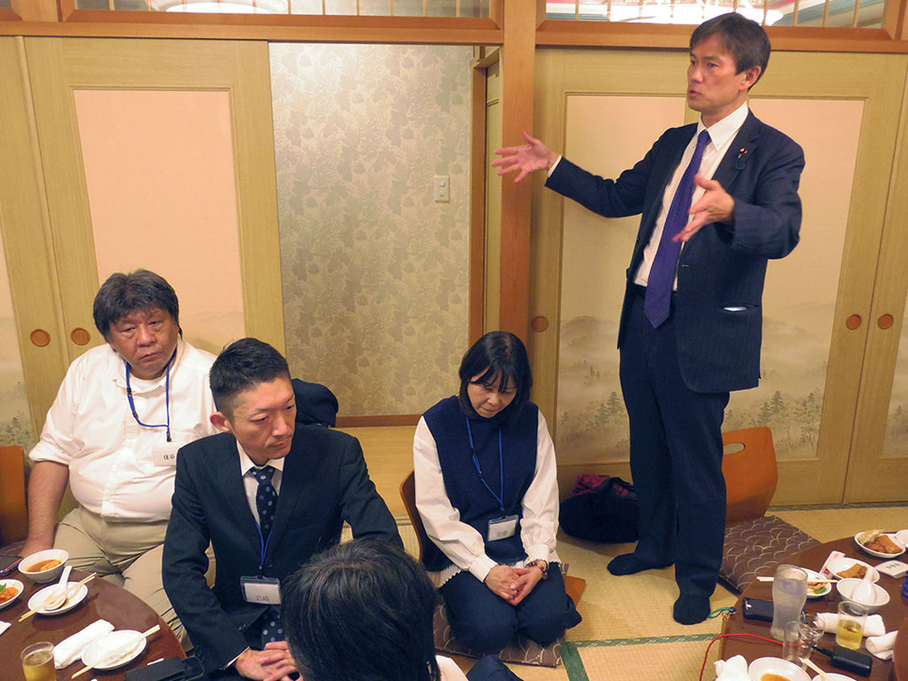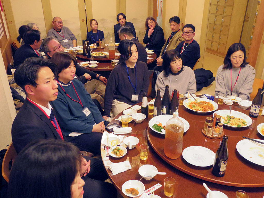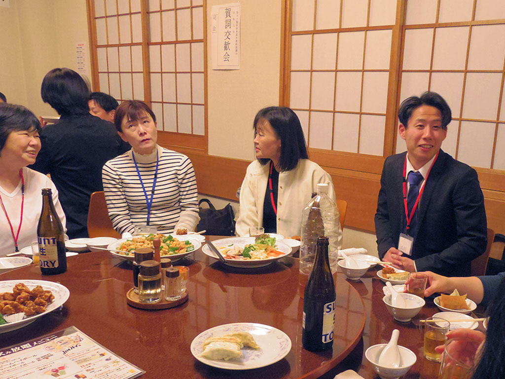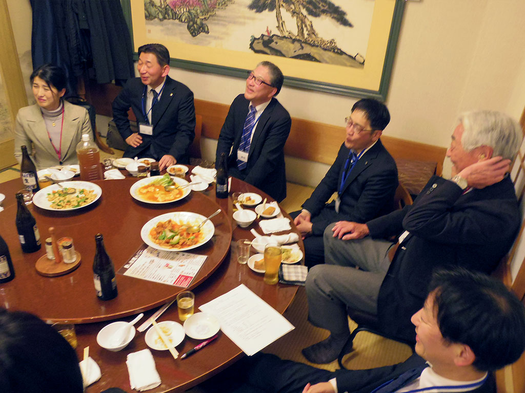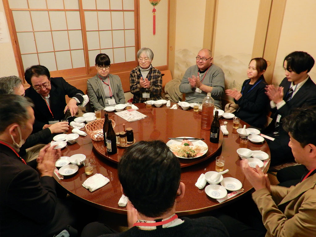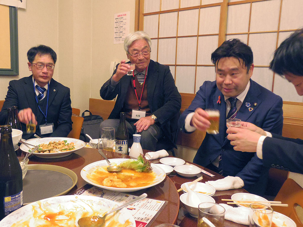 今日は日ごろお世話になっております厚木市の次長様と課長様にご出席頂ききありがとうございます。 特に就職相談会などを通して大変なご支援をいただき、改めて感謝申し上げます。19年目を迎えたこの会が、なお一層発展していくことをお祈り申し上げまして、乾杯の音頭を取らせていただきます。乾杯!