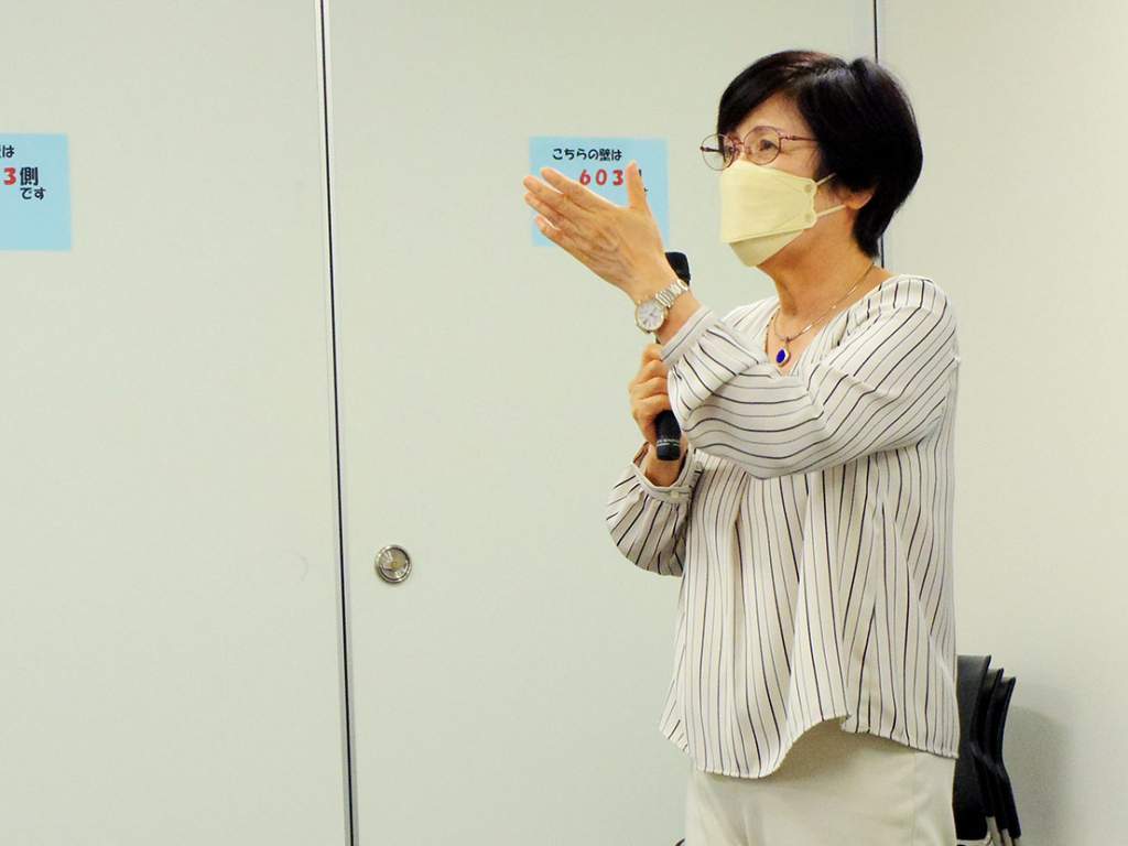 「3年ぶりにこうして集まって研修会を行うことができました。昨年度オンラインで行った際には参加者が少なく寂しかったので、対面で実施できることをとても嬉しく感じています。ぜひ、今日の研修内容を各事業所に持ち帰って、参加できなかった方々に伝えていただいたり、これから行う研修などに取り入れていただくようお願いします」と挨拶がありました。